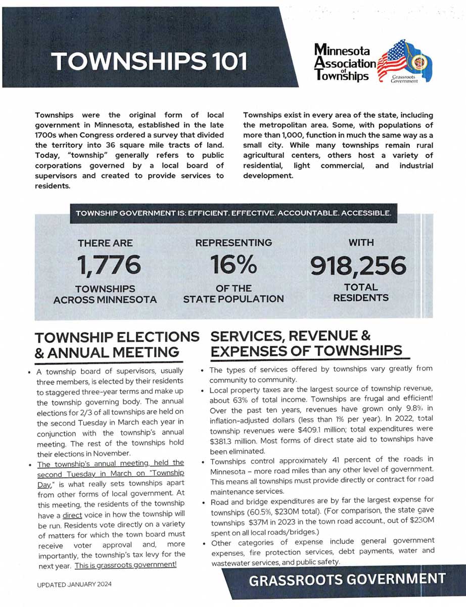 We recently attended the Minnesota Association of Townships (MAT) event at the State Capitol in St. Paul. This gathering brought together township representatives from across the state, including supervisors, treasurers, and clerks to discuss issues affecting townships like ours. It was an important opportunity to hear from MAT representatives, connect with state lawmakers, and advocate for our community.